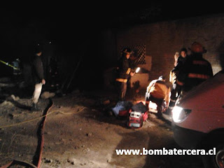 La central de alarmas de nuestro Cuerpo de Bomberos despachó a la unidad B2 correspondiente a la Bomba 'Chile-España', pero finalmente fué la unidad B3 de nuestra Compañía la cual terminó dirigiéndose rápidamente. En el lugar, la construcción ubicada por la parte posterior de una muralla la cual pertenecía a una vivienda vecina, se encontraba prácticamente en el suelo y la intensidad de las llamas provocaron que parte de la vivienda contigua también se viera afectada en donde se guardaba una enorme cantidad de carbón bajo techo. Pero la situación más grave se vivía a un costado de la construcción en llamas en donde un hombre identificado como Segundo Patricio Elgueta Romero de 44 años se encontraba desnudo en el suelo, inmóvil y con la gran mayoría de su cuerpo visiblemente afectado por quemaduras. La dramática escena que no dejó indiferente a los presentes fué atendida en principio por el personal de Bomberos que acudió al lugar, que en primera instancia comenzaron a apagar las llamas que se encontraban próximo a los pies del individuo, los cuales quedaron con gravisimas quemaduras.